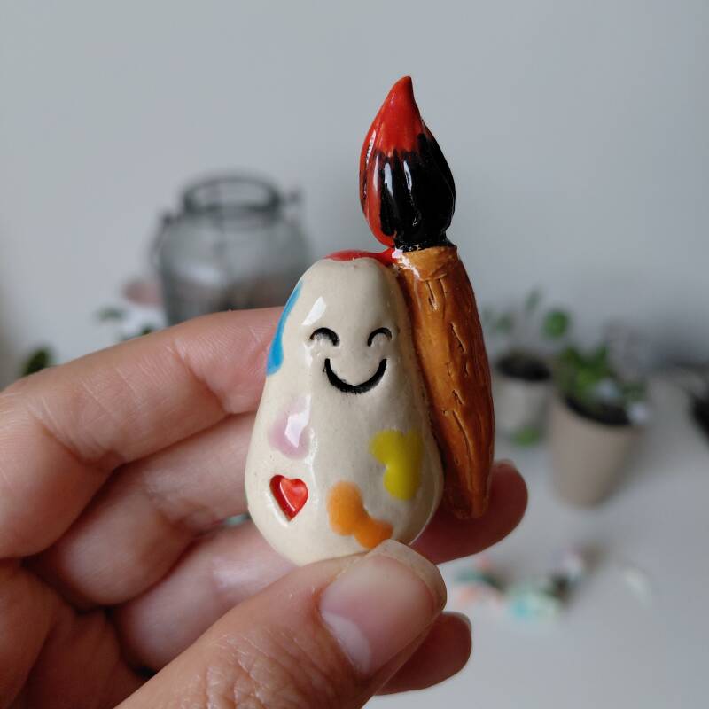 Na de huisjes kwamen de Blobjes, handgeboetseerde figuurtjes vol eigenwijs karakter, en mijn miniatuurtegeltjes, waarop ik mijn liefde voor tekenen en schilderen kwijt kan. Elk stukje is uniek, met de hand gevormd en met heel veel geduld gemaakt.